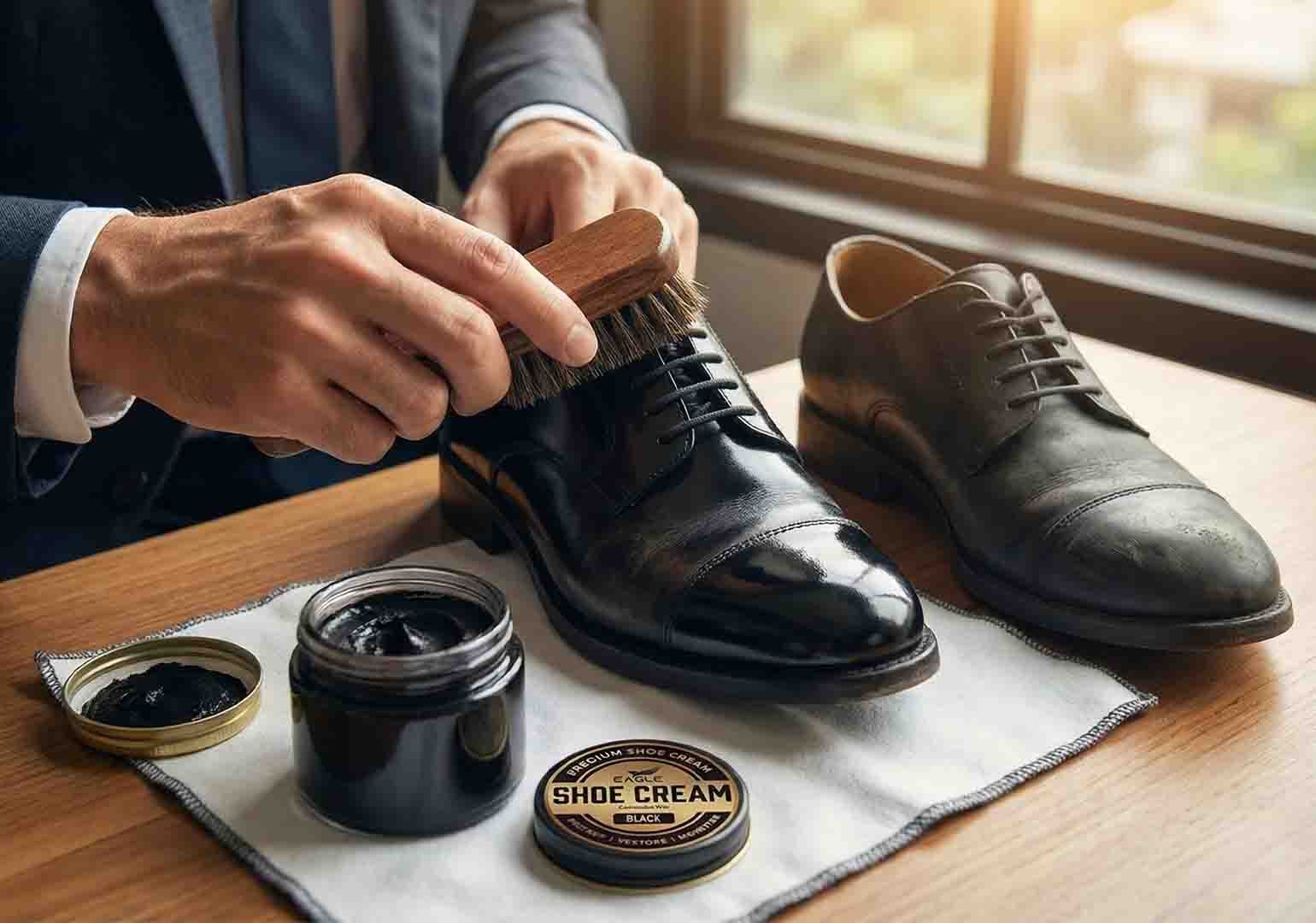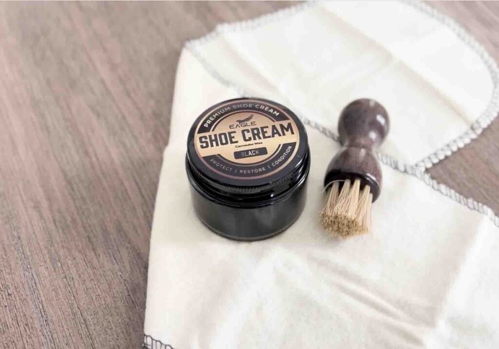 You can easily use the Eagle Shoe Cream Polish Kit.Start by evenly applying cream to the shoe surface using the wooden brush from the kit.After that, leave it to dry for 5-10 minutes.