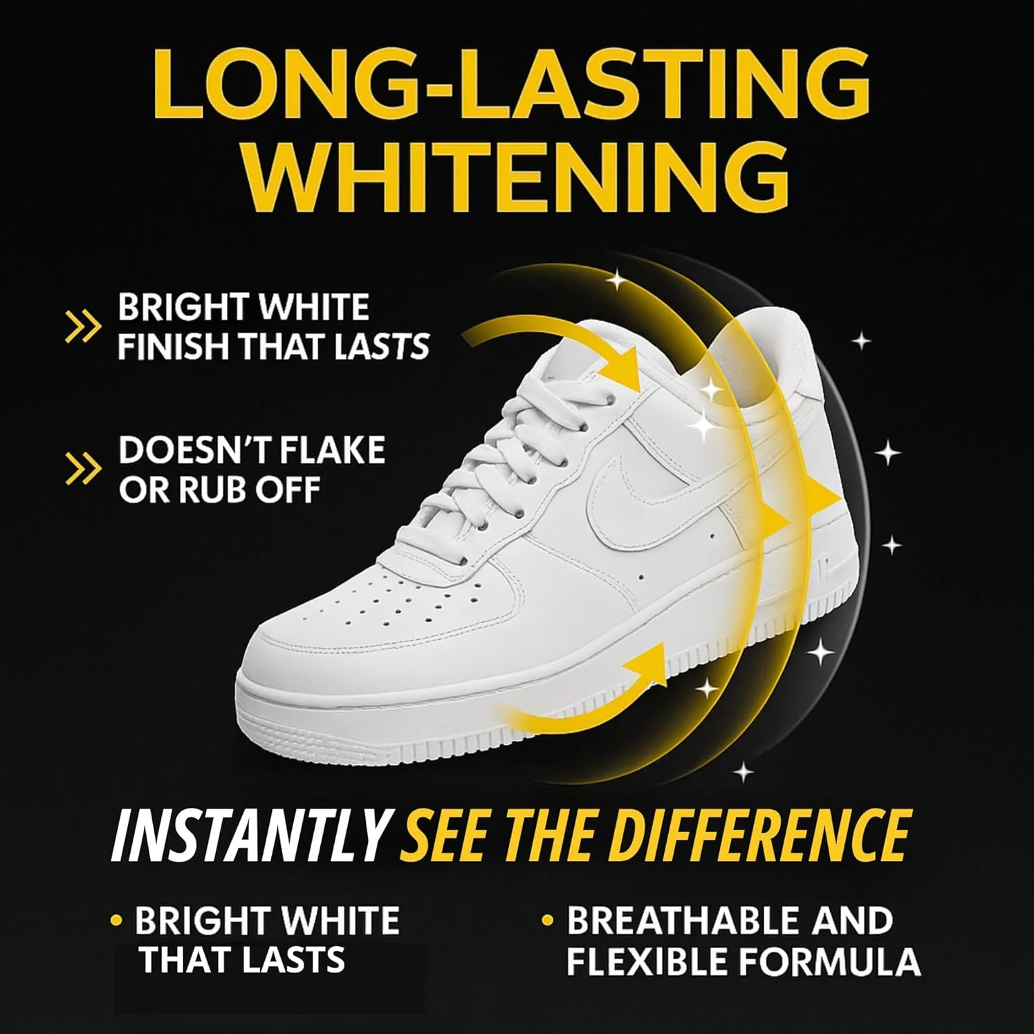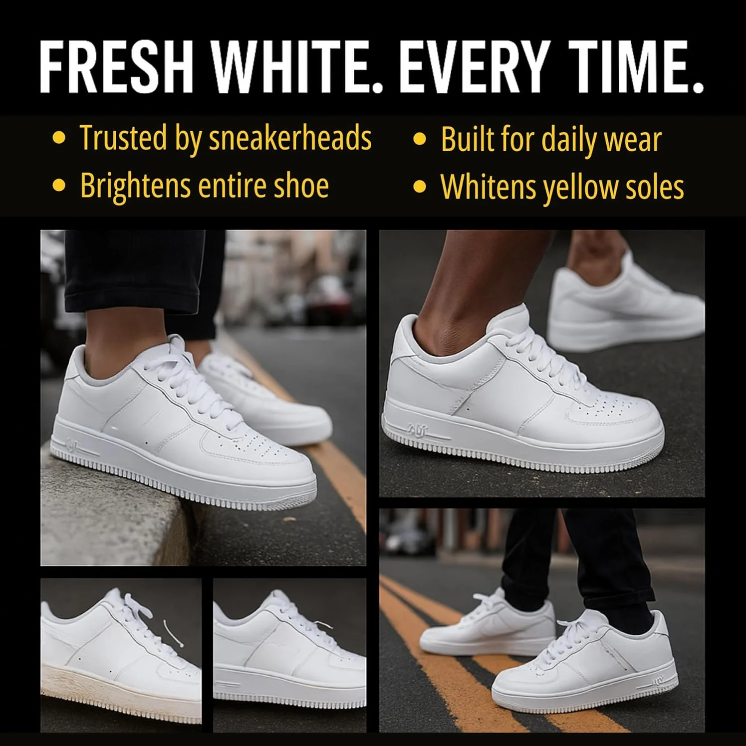 Powerful whitening polish that restores sneakers by covering dirt, yellowing, and scuff marks while brightening the original white finish. Dries quickly with a smooth, even coat.