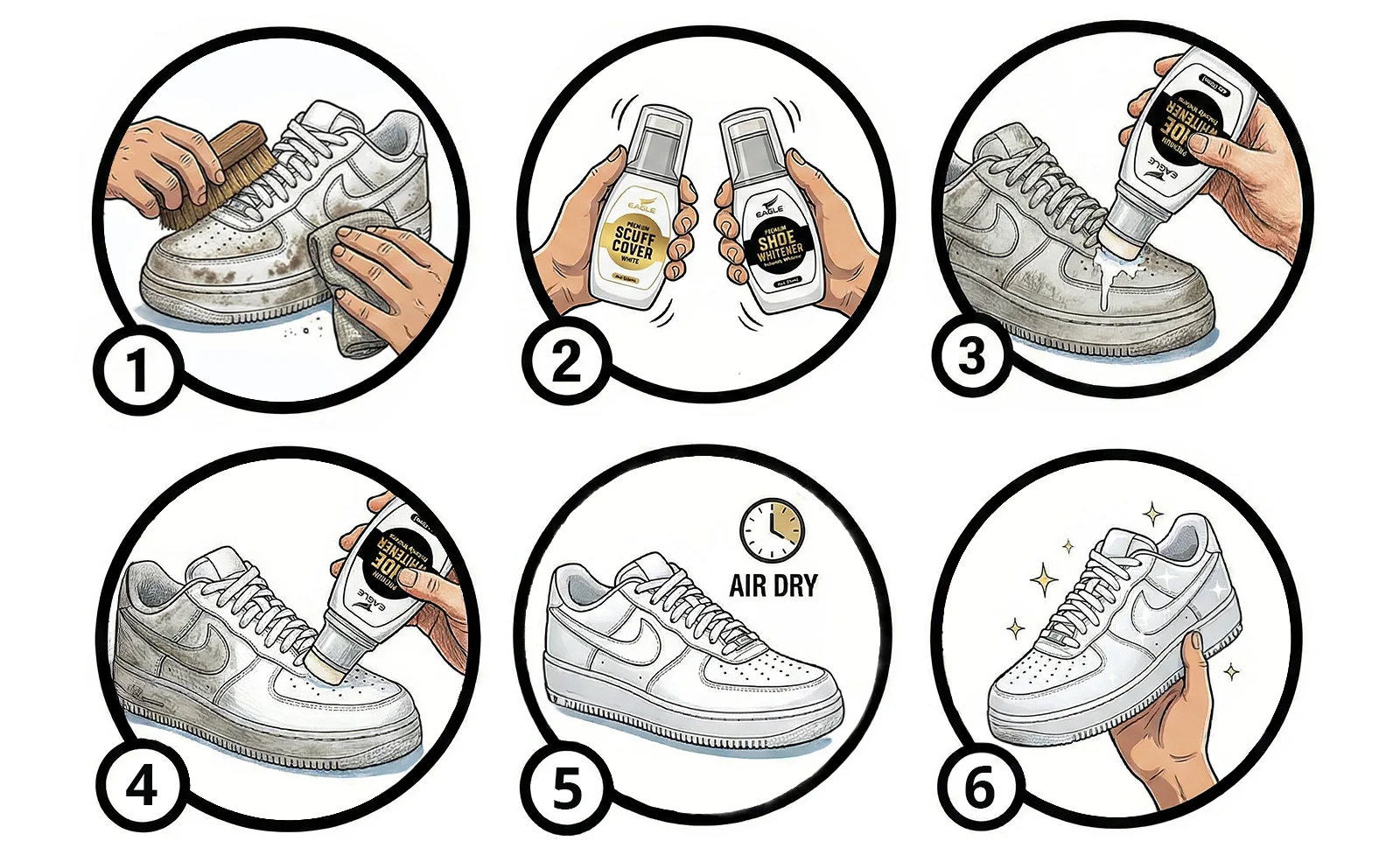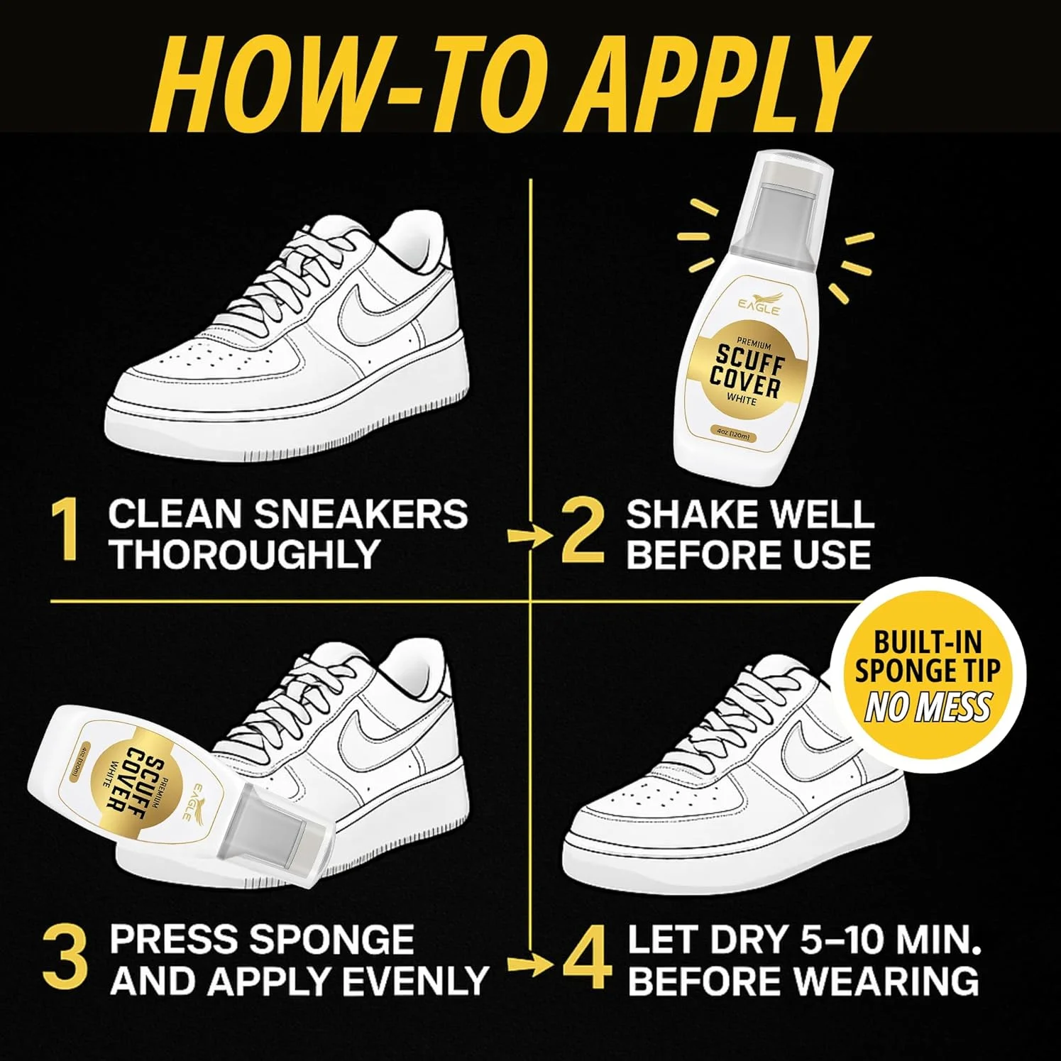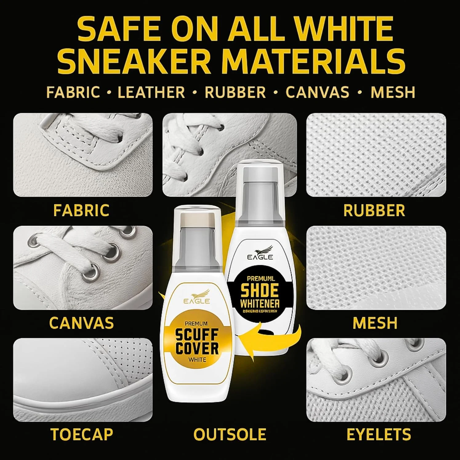 Eagle White Shoe Polish Kit features a fast-acting formula designed to cover dirt, yellowing, and scuff marks on sneakers. It restores brightness and leaves shoes looking fresh with a smooth, even finish.