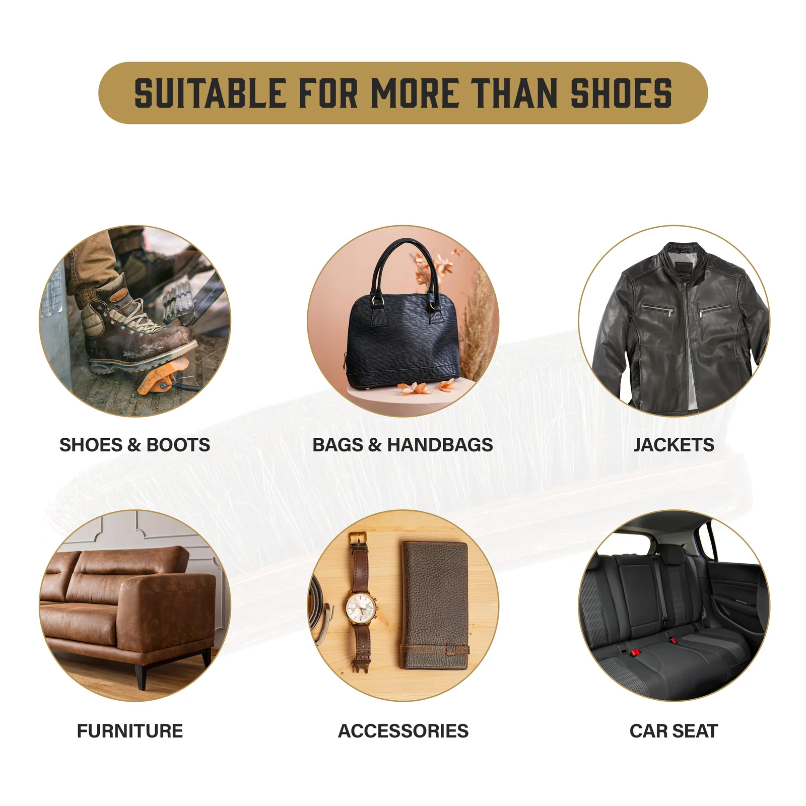 Versatile Leather Care Brushes – Ideal for maintaining all types of leather goods, including dress shoes, work boots, handbags, belts, and wallets.