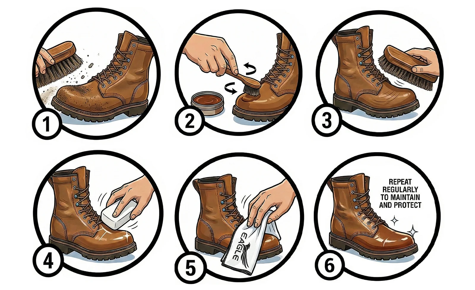 Professional 5-piece leather care set designed to clean, polish, and maintain leather shoes, boots, bags, and accessories. Keeps leather smooth, shiny, and well-protected.