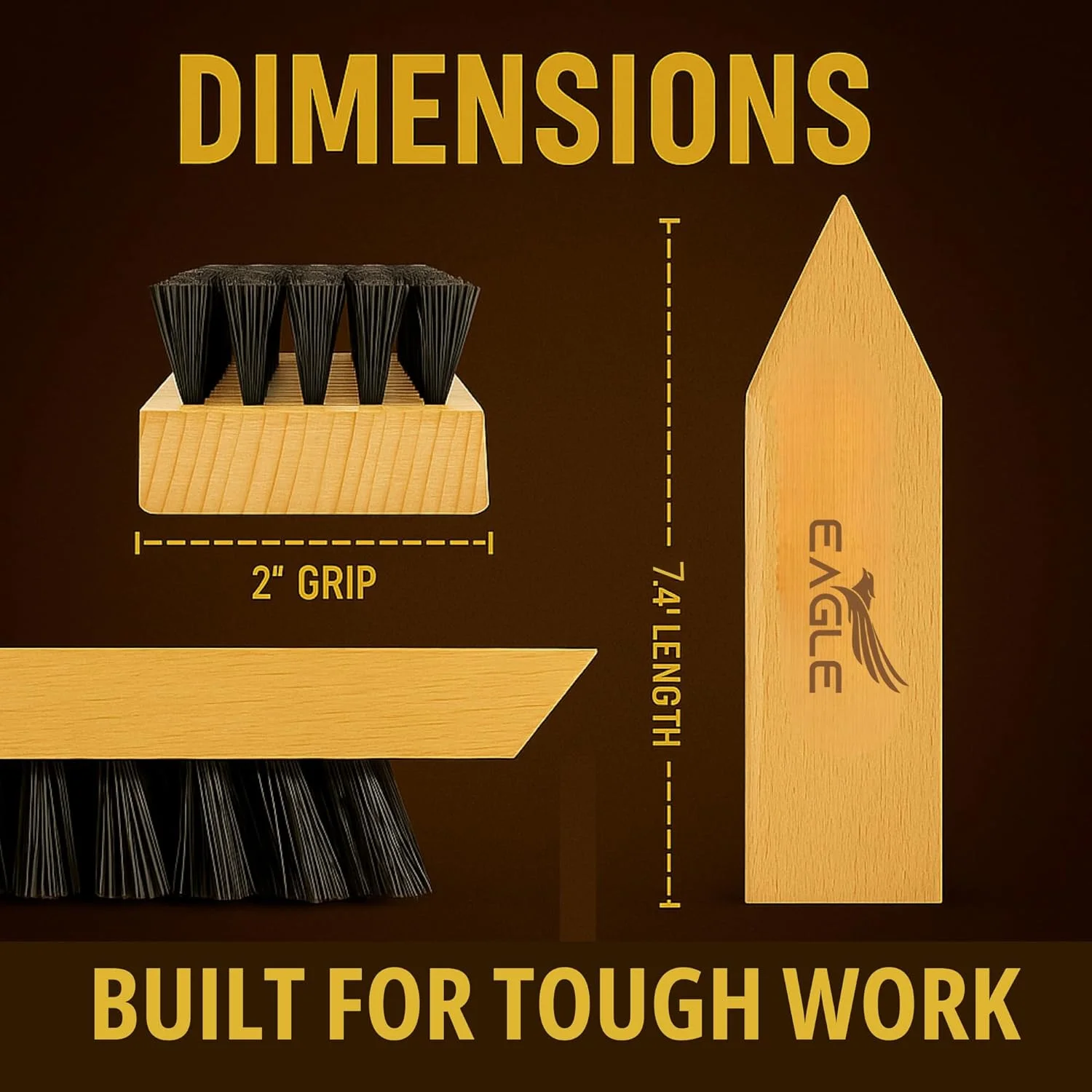 Eagle Heavy-Duty Boot & Cleat Brush features tough synthetic bristles that power through dried mud, turf, and debris on the soles and treads of your boots, cleats, and outdoor shoes. Designed for rugged use, it easily scrubs away dirt without damaging footwear.