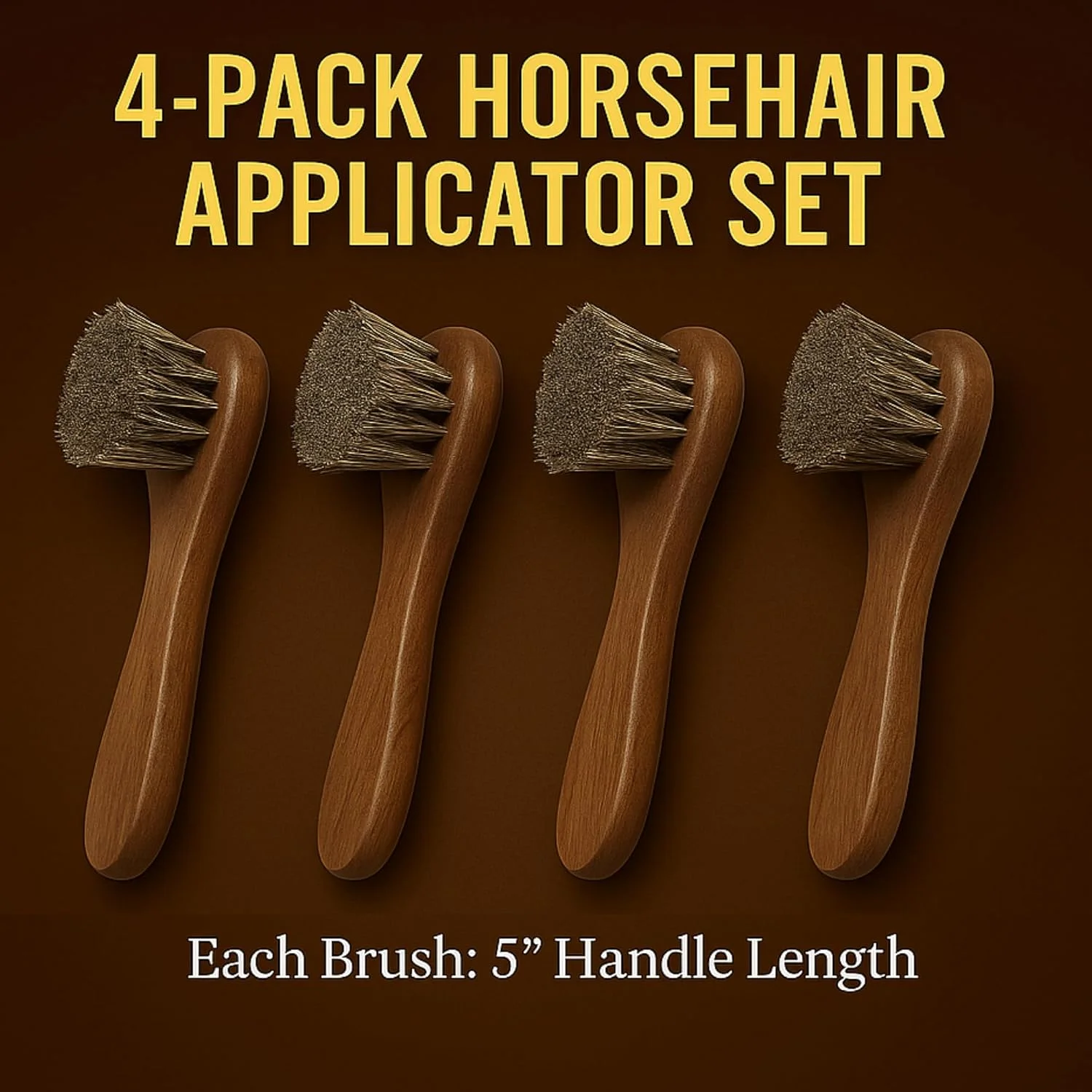 Premium horsehair applicator brushes designed for smooth, even application of saddle soap, creams, conditioners, and polishes. Soft, real horsehair delivers a gentle, scratch-free shine while helping products absorb evenly into leather.