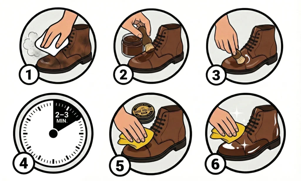 Let leather absorb cream for 2–3 minutes.