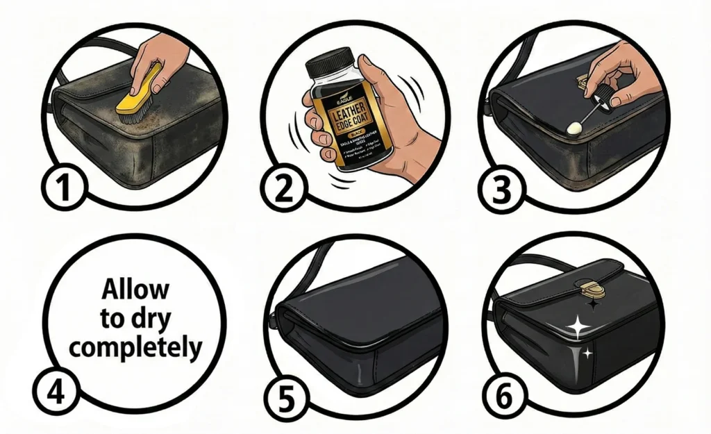 Eagle Black Leather Edge Coat is specially formulated for black leather edges. Using it on other colors may change their appearance, so it works best on black edges.