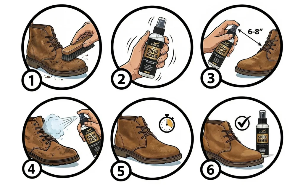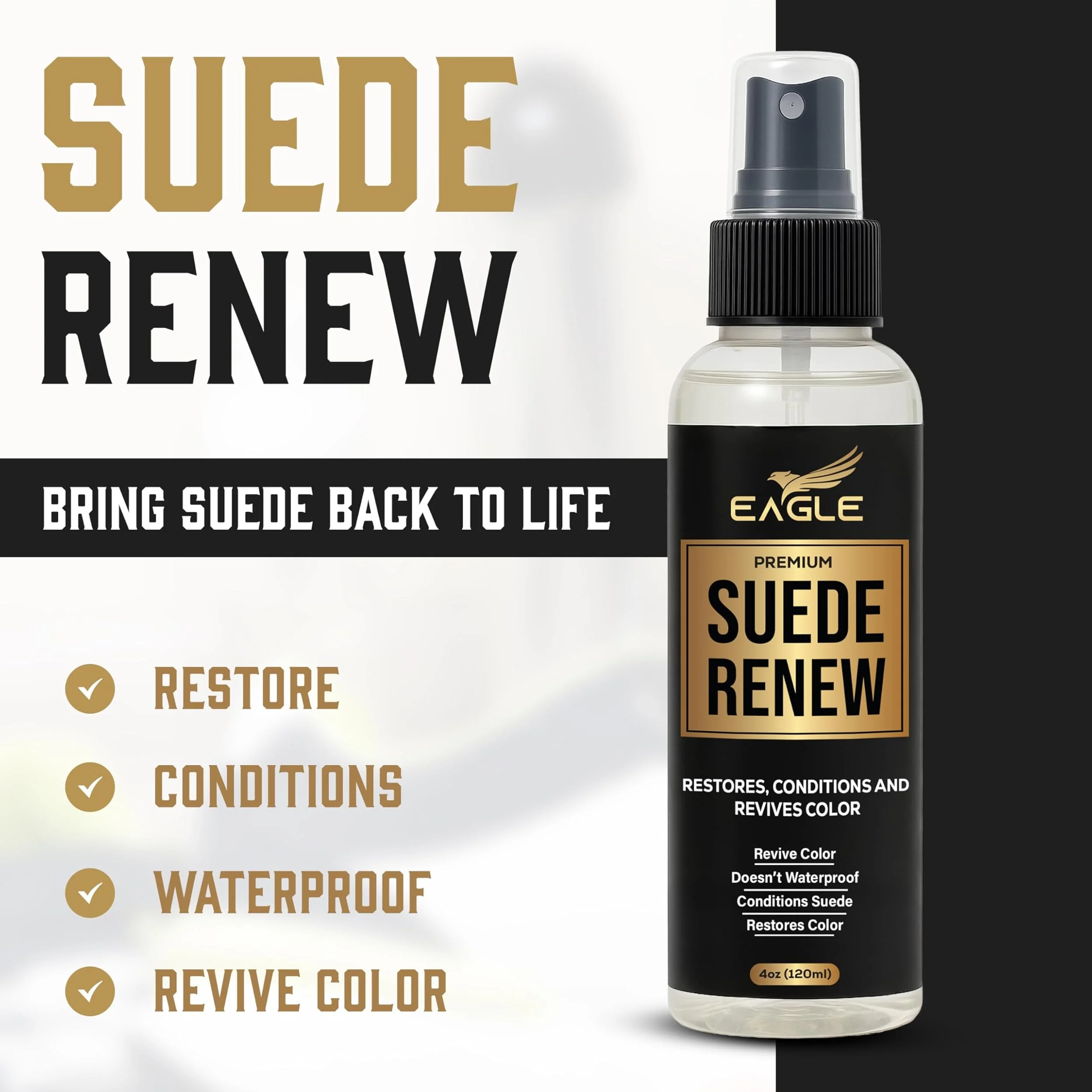 No. Eagle Suede Renew & Conditioner Spray is formulated to restore softness and refresh color, but it does not provide waterproofing. For water and stain protection, a dedicated product like Eagle Suede & Nubuck Protector Spray should be applied after conditioning.