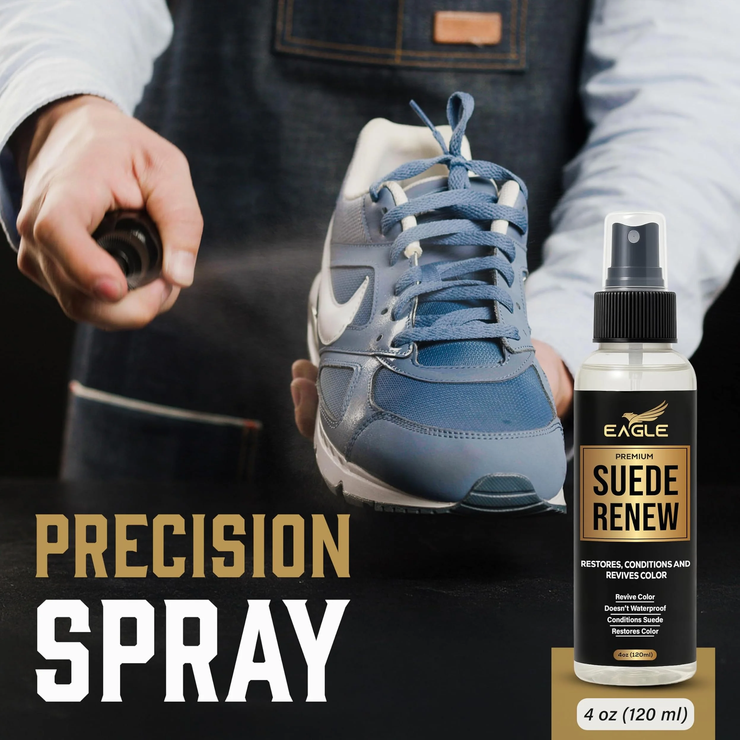 Eagle Suede Renew & Conditioner Spray features a gentle formula that softens, cleans, and restores faded suede while enriching its natural color. It removes dirt and light stains to keep your suede shoes, boots, and accessories looking fresh and vibrant.