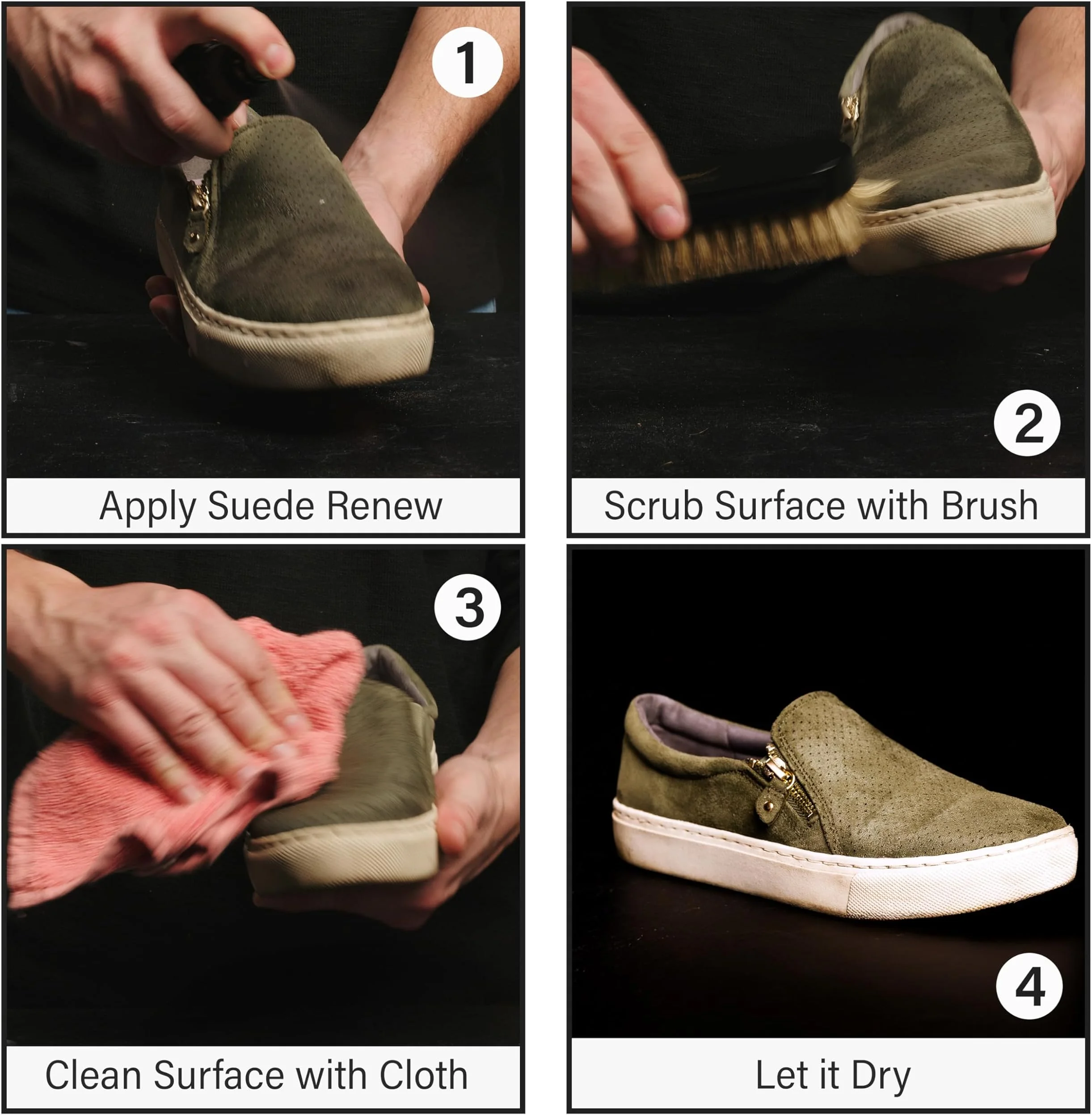 Allow suede to dry completely before use.
