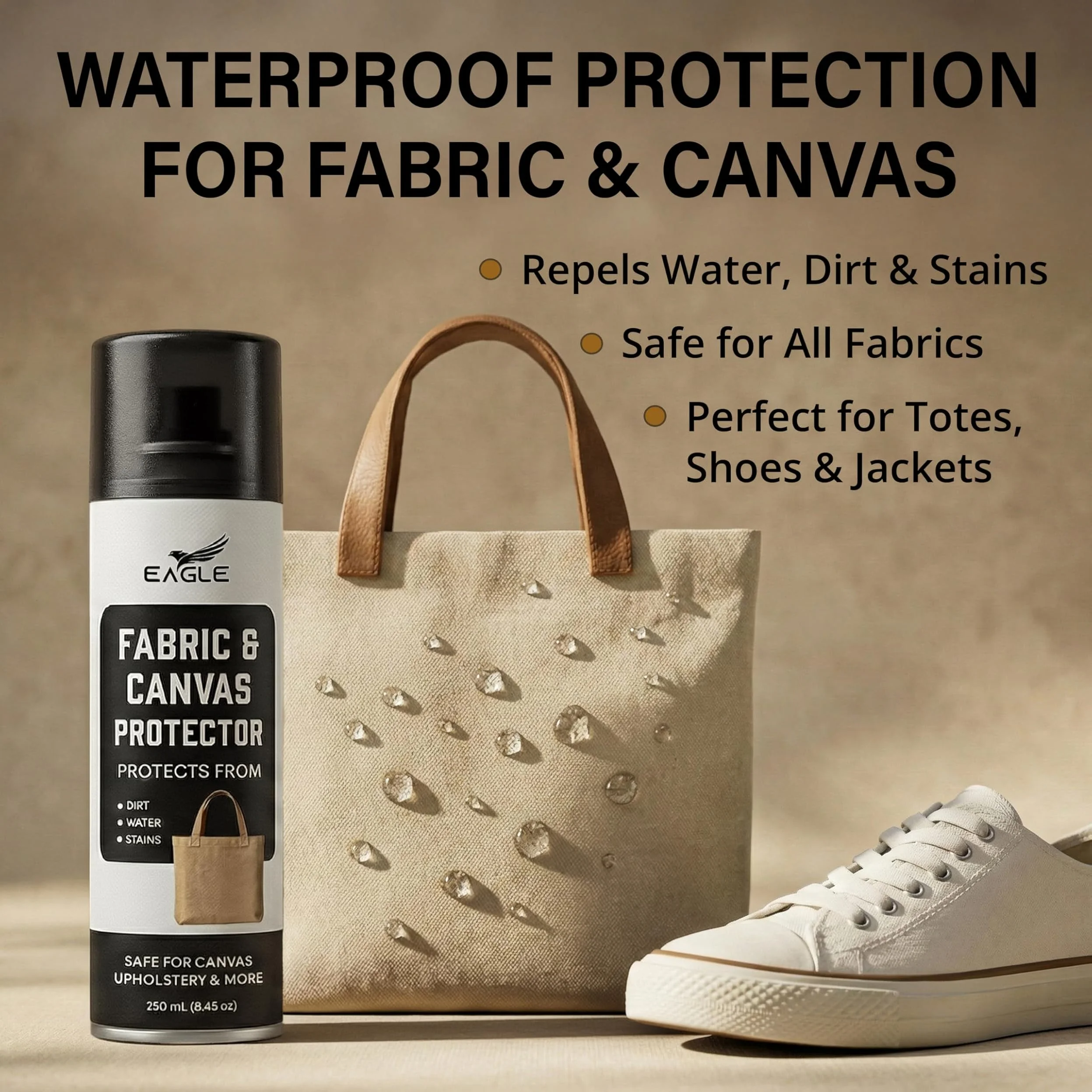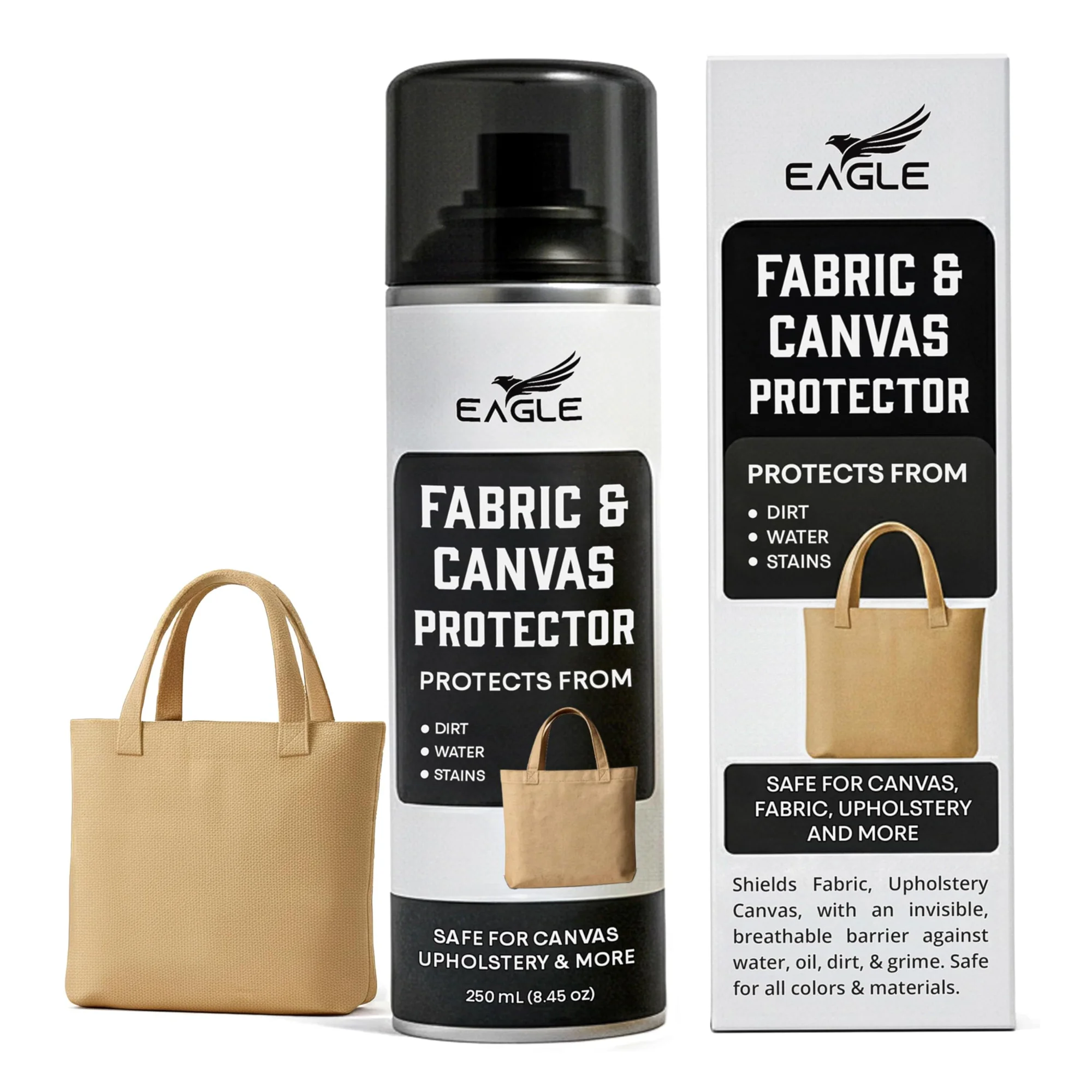 Eagle Fabric & Canvas Protector Spray features a specially formulated solution that repels water, dirt, and stains while keeping fabrics breathable and soft. It protects sneakers, bags, and apparel without altering color or texture.