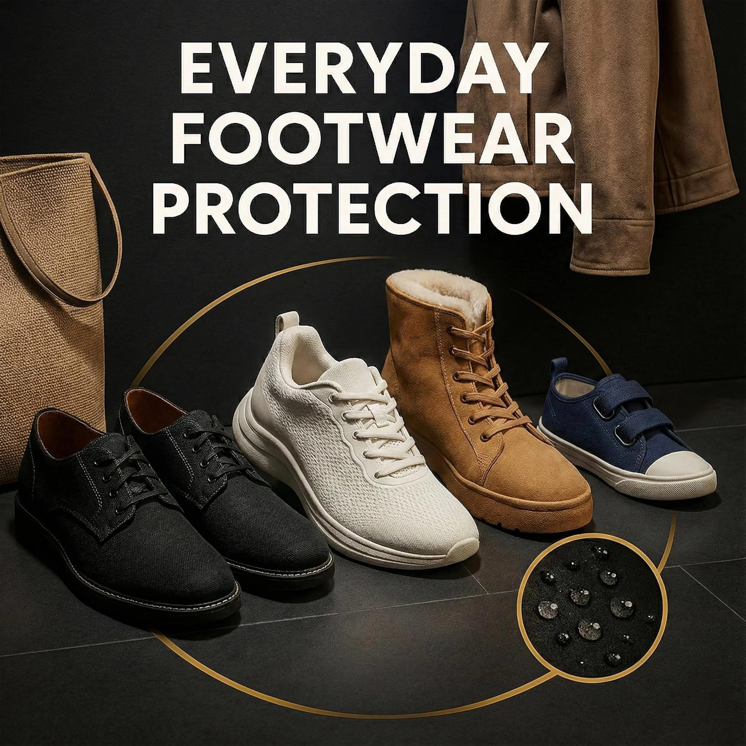 Advanced fabric & canvas protector that repels water, dirt, and stains on sneakers, bags, and apparel without altering color or texture. Shields surfaces while keeping materials breathable.