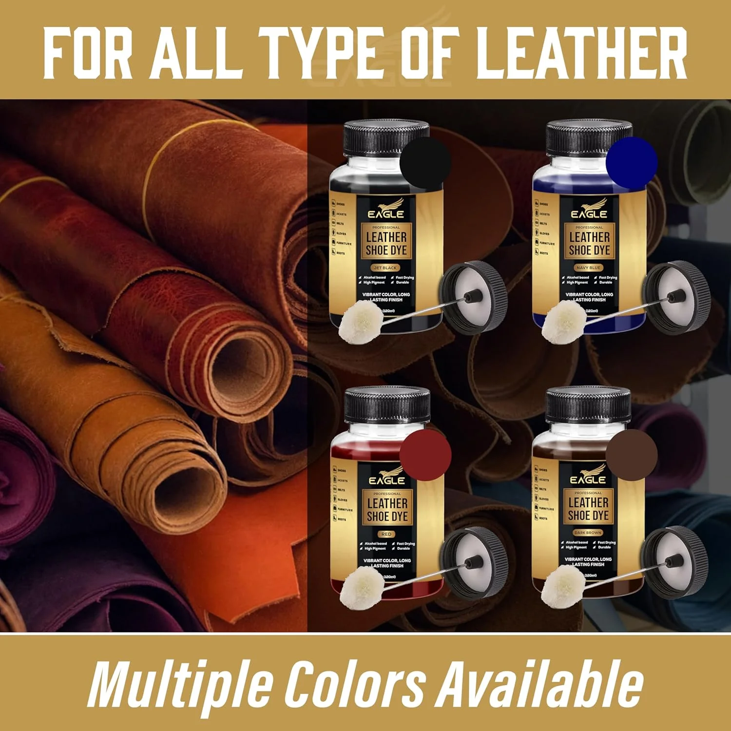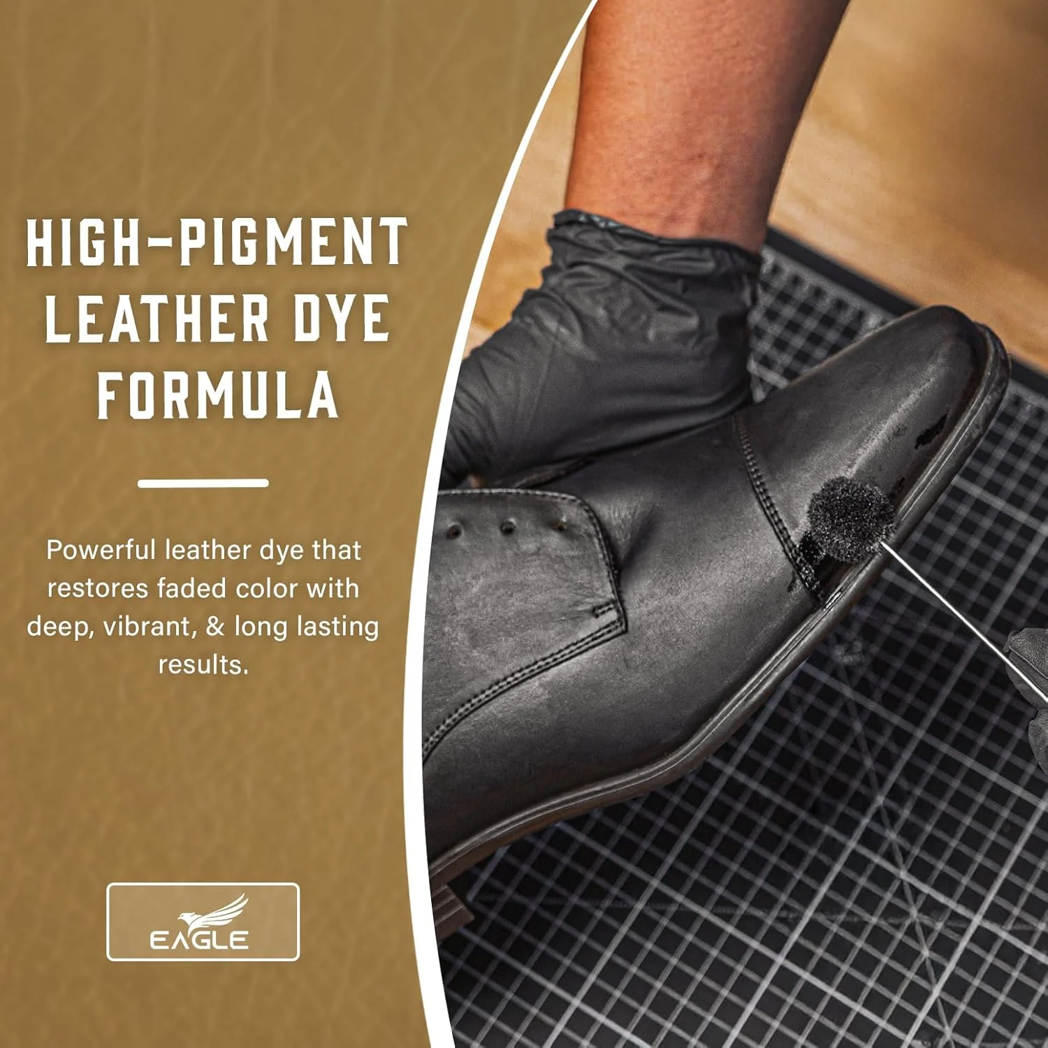 Eagle Leather Shoe Dye features a deep-penetrating formula that restores, recolors, and revitalizes leather while maintaining its soft, flexible texture. It covers scuffs, fading, and discoloration to keep your leather shoes, boots, bags, and furniture looking rich and uniform.