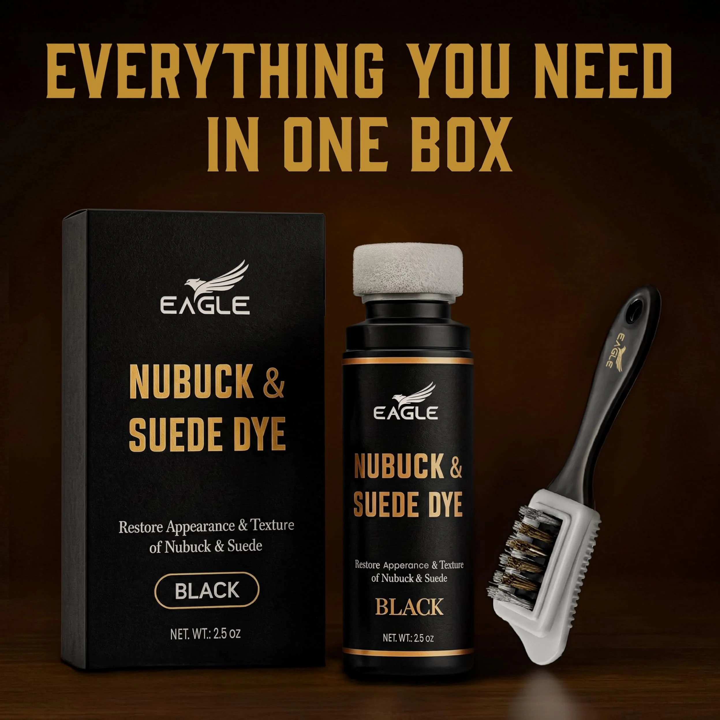 ● Includes 100ml black suede dye with sponge applicator and 3-way suede brush