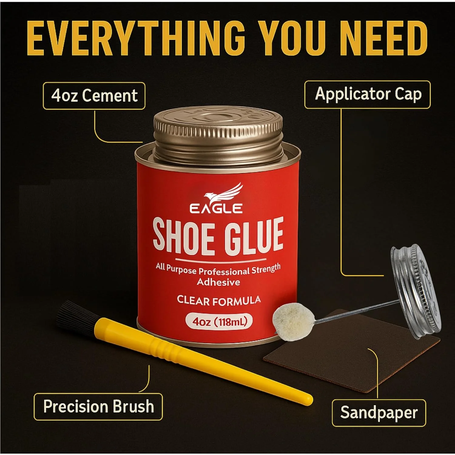 ● Includes 4 oz shoe cement with precision applicator brush.