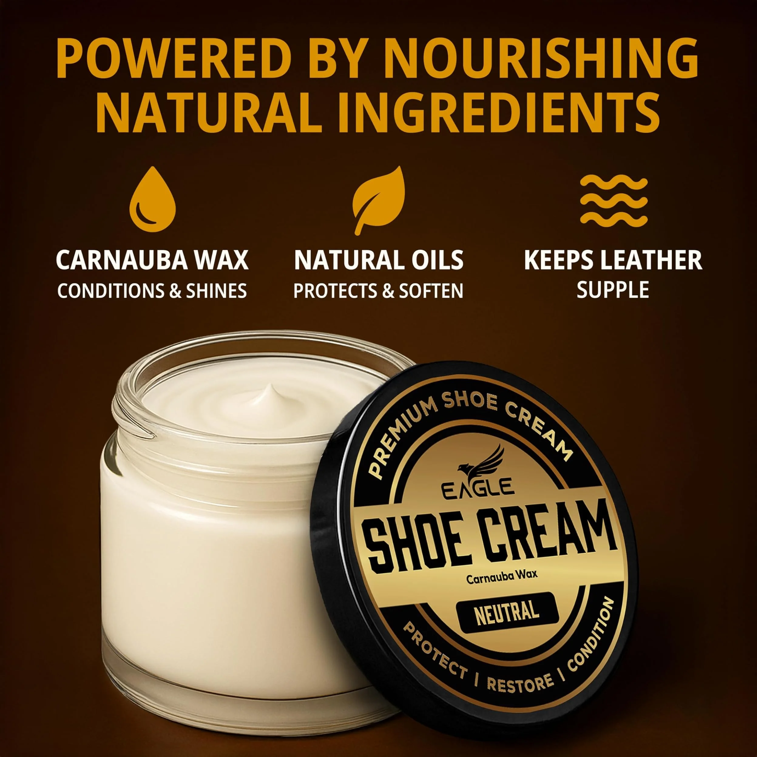 Professional carnauba shoe cream that cleans, conditions, and protects dress shoes, loafers, oxfords, boots, and more. Removes dirt, nourishes leather, and restores rich color and shine without cracking, buildup, or residue. Preserves leather quality while helping prevent drying, moisture damage, and fading.