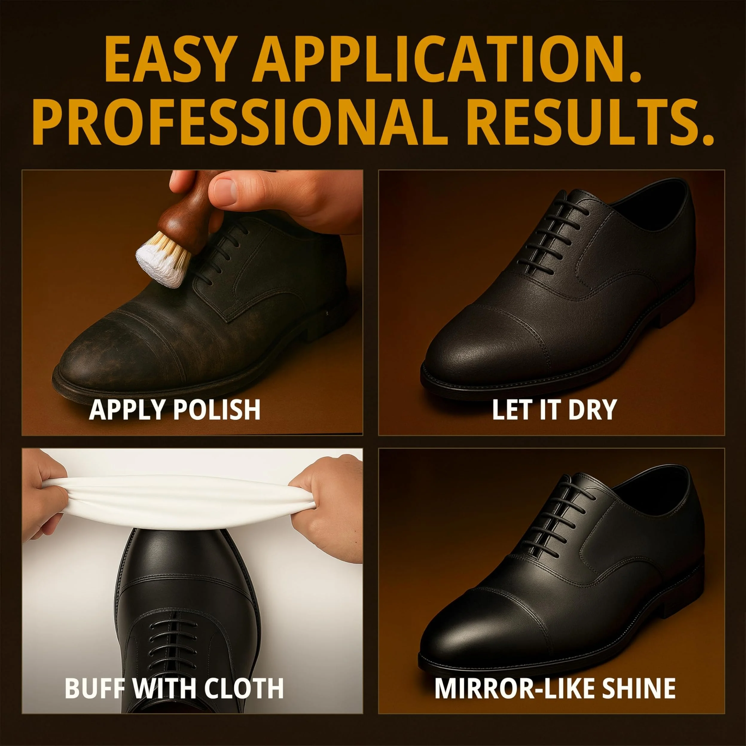 Use regularly to maintain leather quality, enhance color depth, and protect shoes from moisture, drying, and everyday wear.
