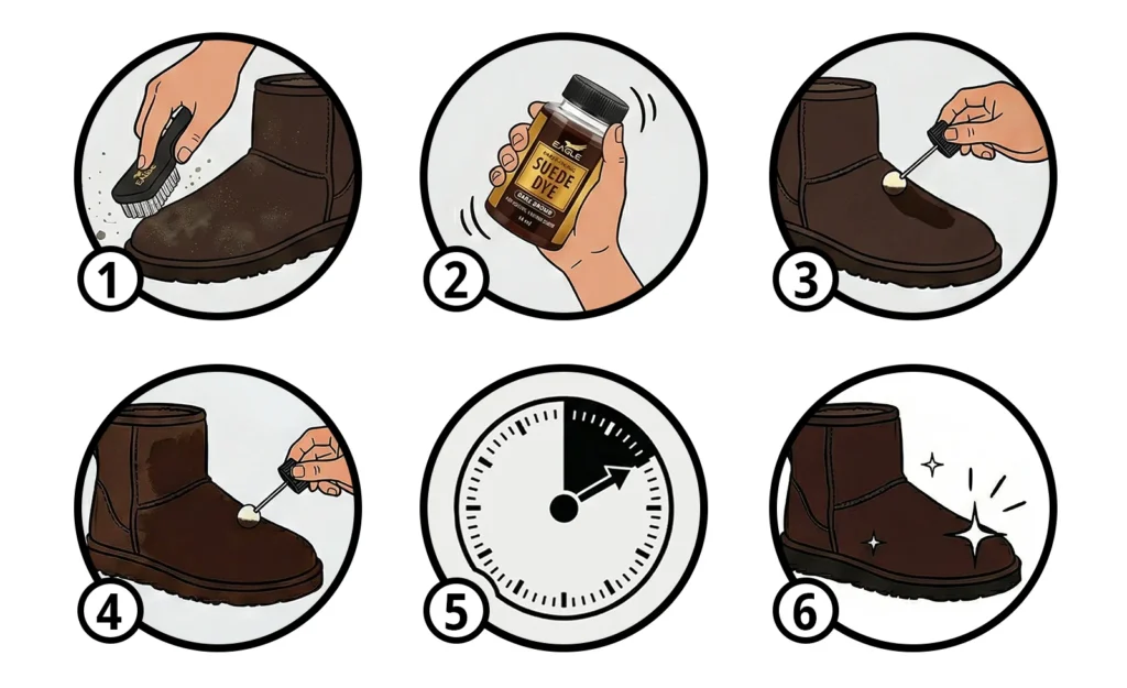 Yes. Eagle Dark Brown Suede Dye restores faded areas and helps even out color on worn suede shoes, boots, and accessories.