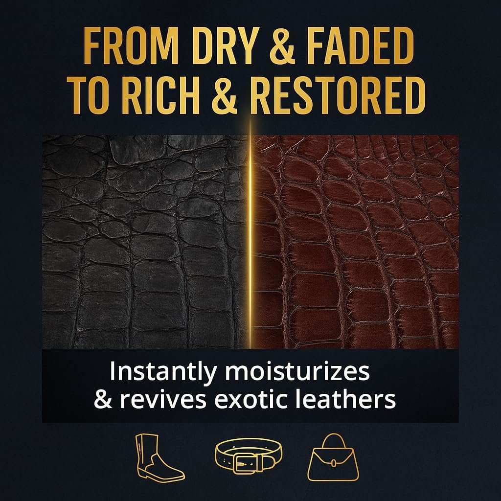 Professional exotic leather spray that cleans, conditions, and protects alligator, crocodile, snakeskin, lizard, ostrich, and more. Removes dirt, nourishes, and restores natural sheen without fading or damage. Preserves the unique texture while preventing drying, cracking, and color loss.