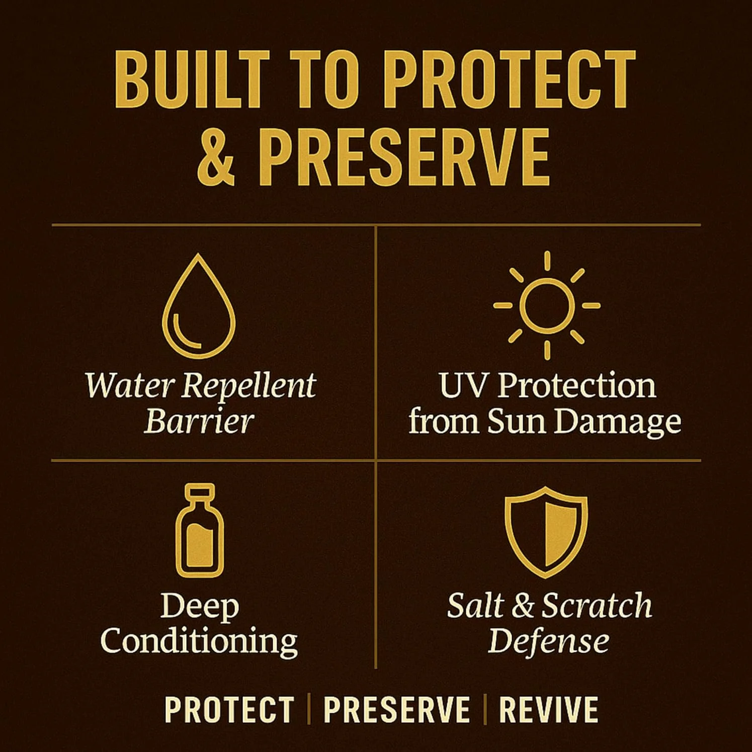 Pure mink oil formula that softens, waterproofs, and preserves leather and vinyl surfaces. Restores flexibility, prevents cracking, and protects against moisture and salt damage for long-lasting care.