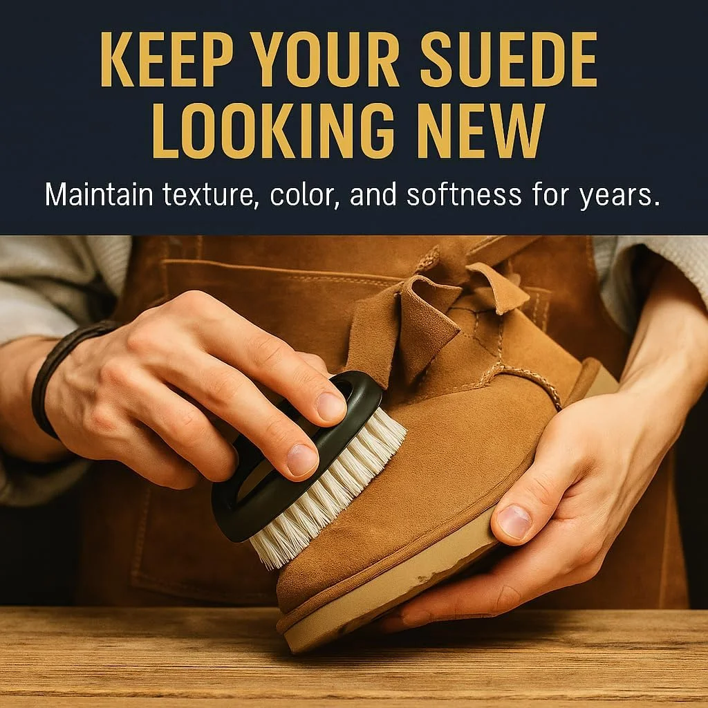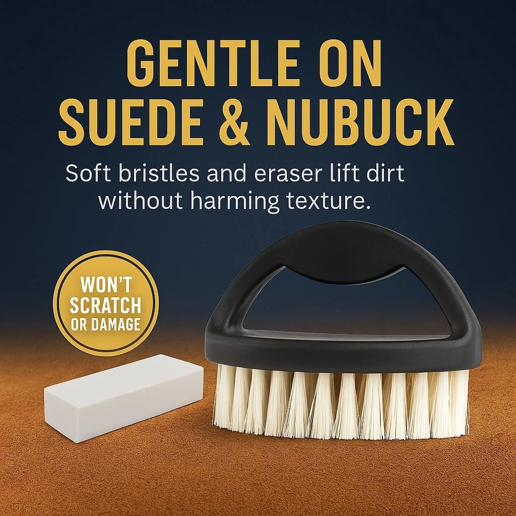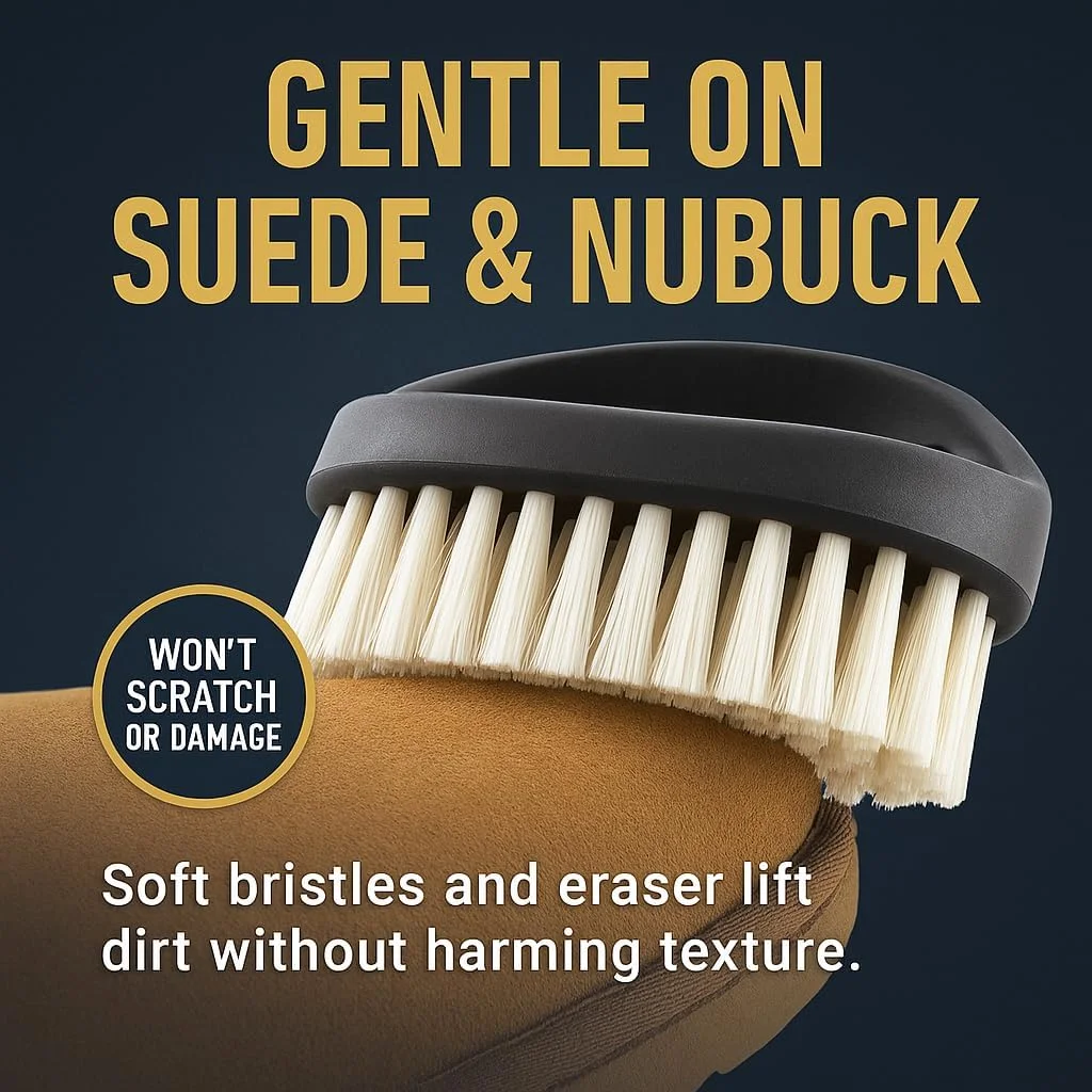 - For deeper cleaning, use the brush with a suede cleaner or mild solution if needed.