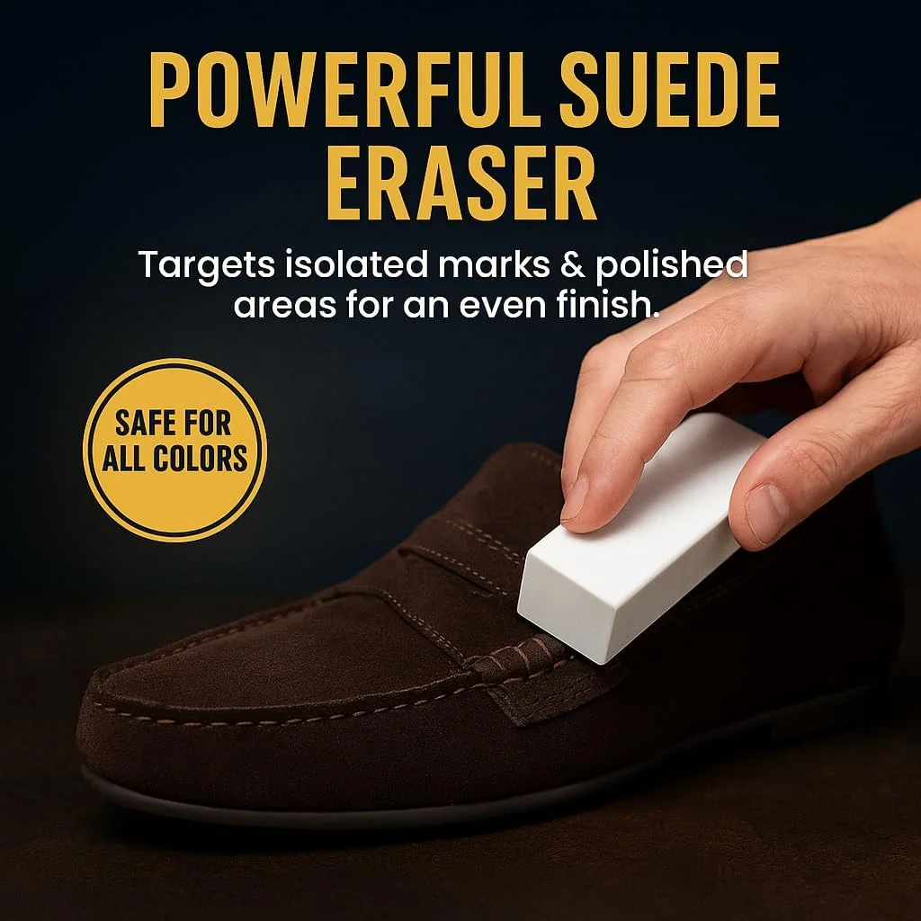 - Target scuff marks and stains using the suede eraser in light, circular motions.